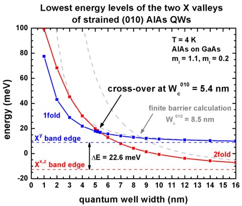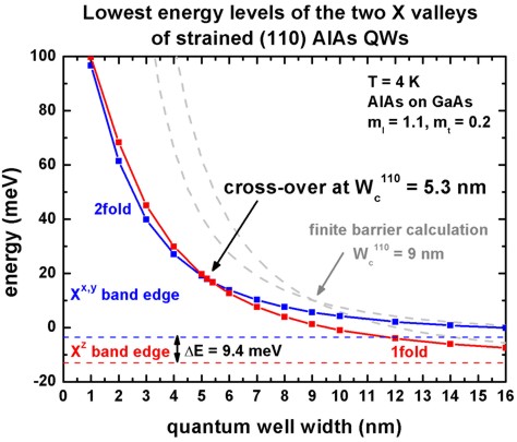From these figures one can extract the cross-over width Wc for the (110) and the (010) strained AlAs QW.