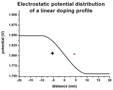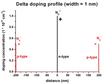 - at the boundaries of the structure there are constant negative charge densities of width 1 nm each (resulting from ionized acceptors NA-).