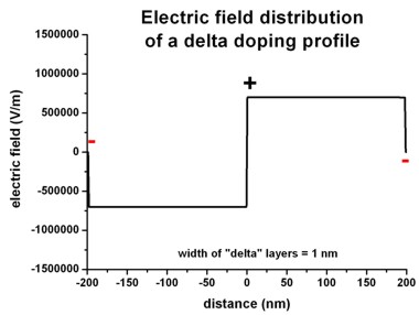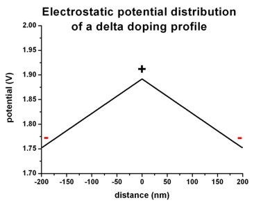 - in the middle       of the structure there is a constant positive  charge density   of width 1 nm         (resulting from ionized donors     ND+) and